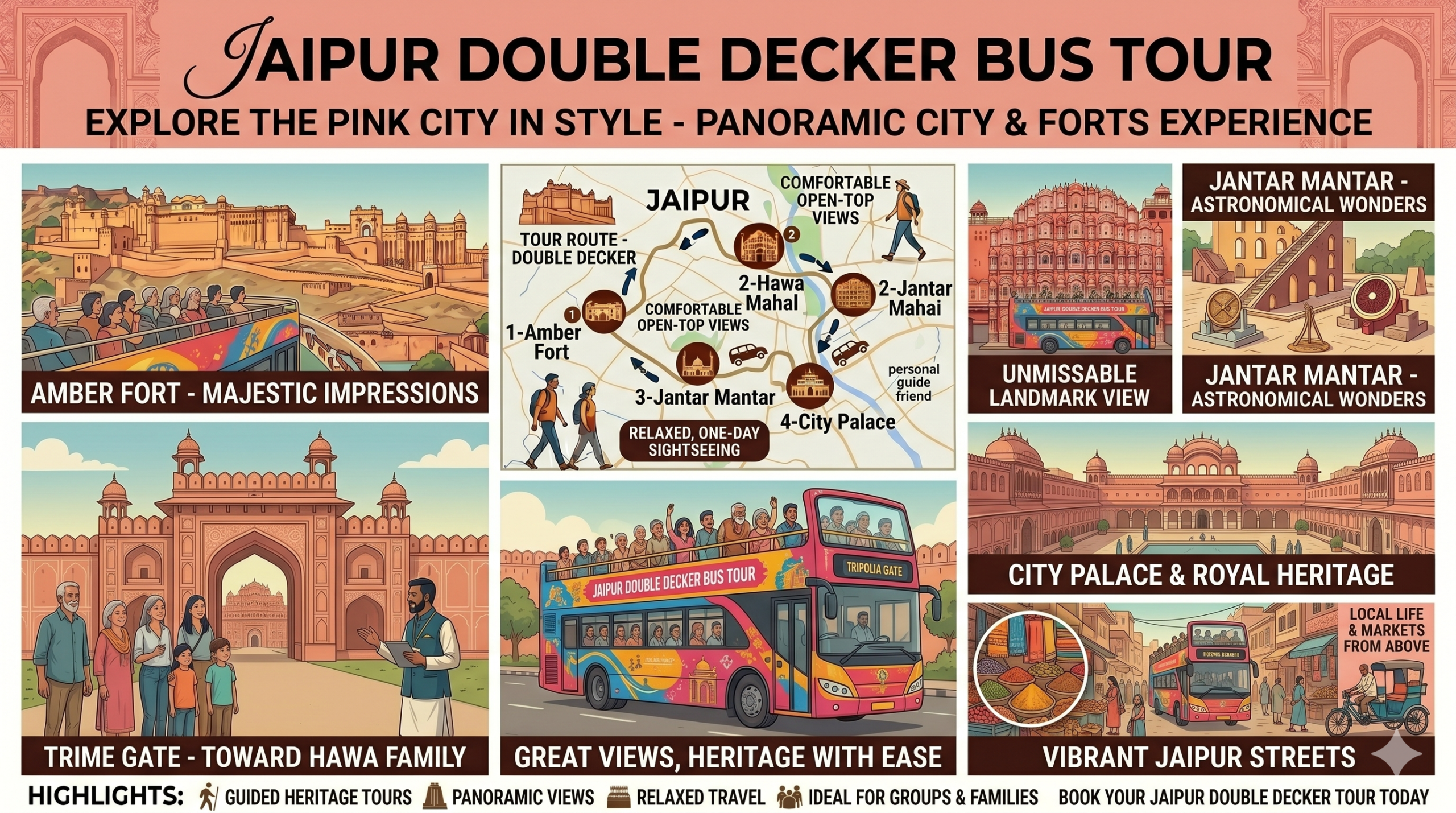 Our guided tour will assist you to explore Jaipur royalty, architecture, and culture in a short span of just 1 day. Sights are scattered around Jaipur city, and it is difficult to visit them without a personal vehicle and a knowledgeable guide friend. Book this Jaipur Full Day Guided Tour Of Jaipur with us to get the best experience of Jaipur.