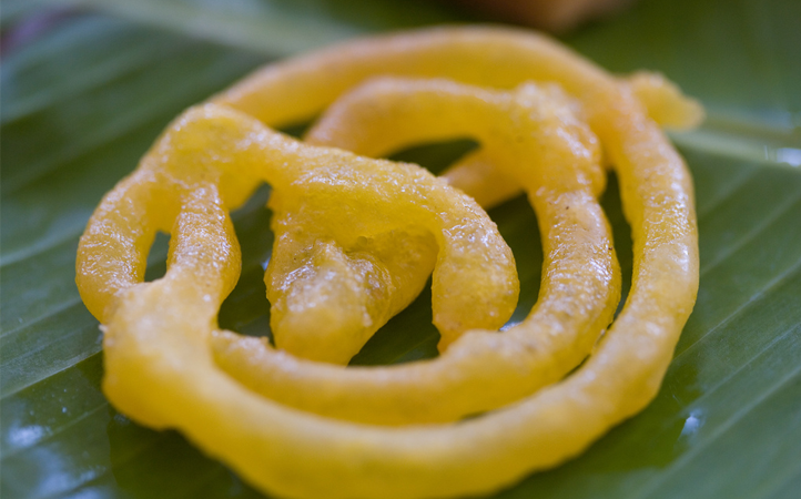 🍯 Jalebi – Deep-fried spirals soaked in syrup, crispy on the outside and juicy inside.